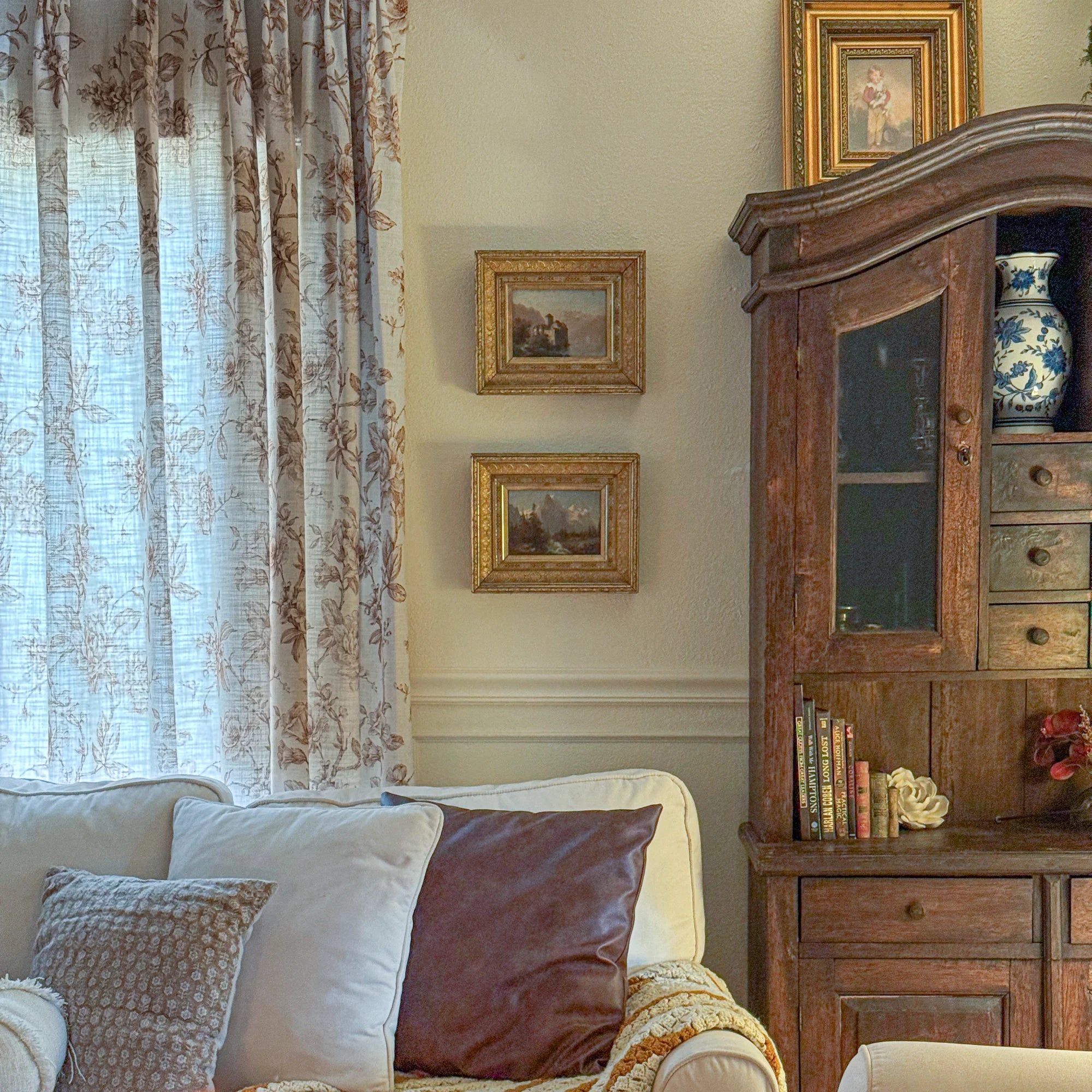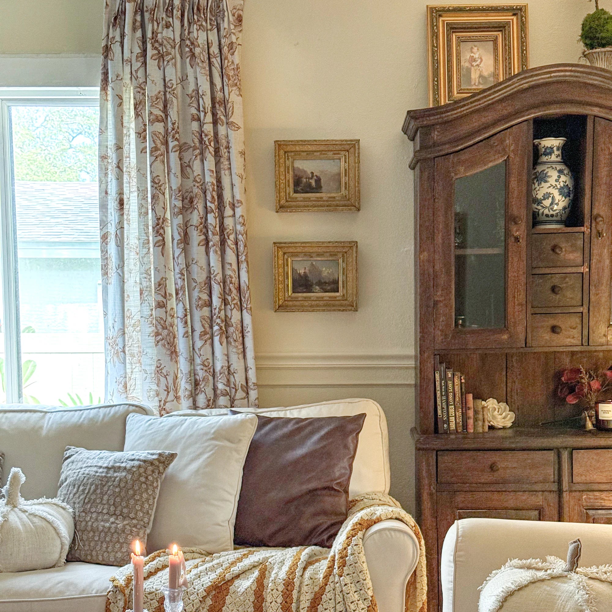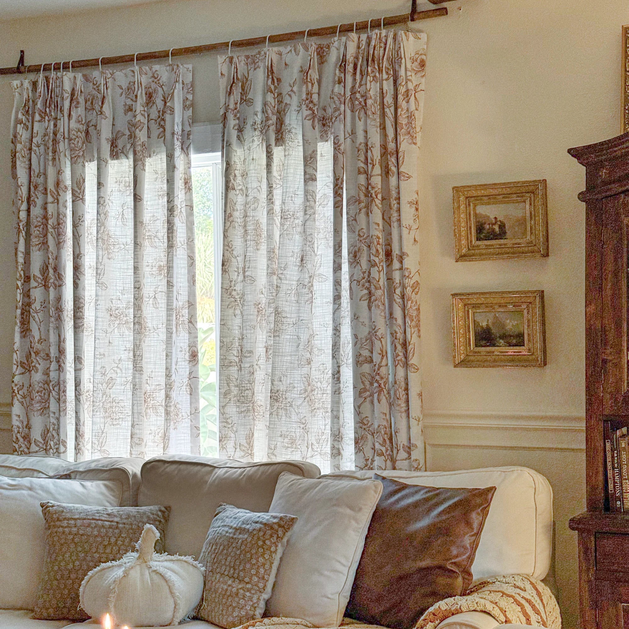 Aveline Print Vintage Mocha Brown Floral Linen Curtains