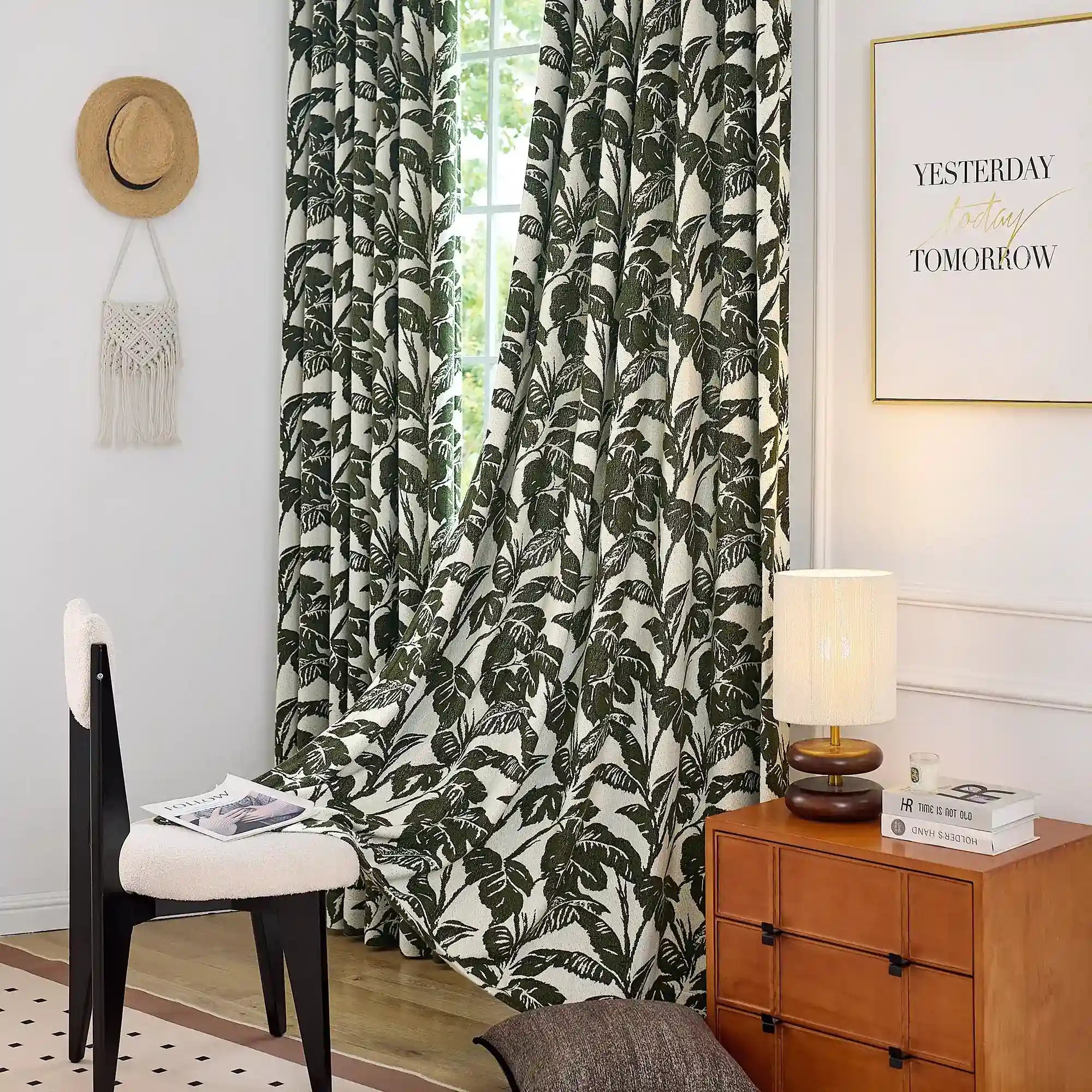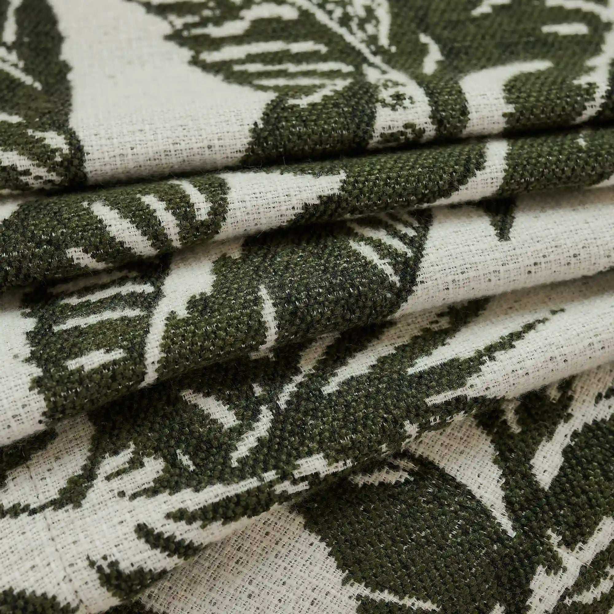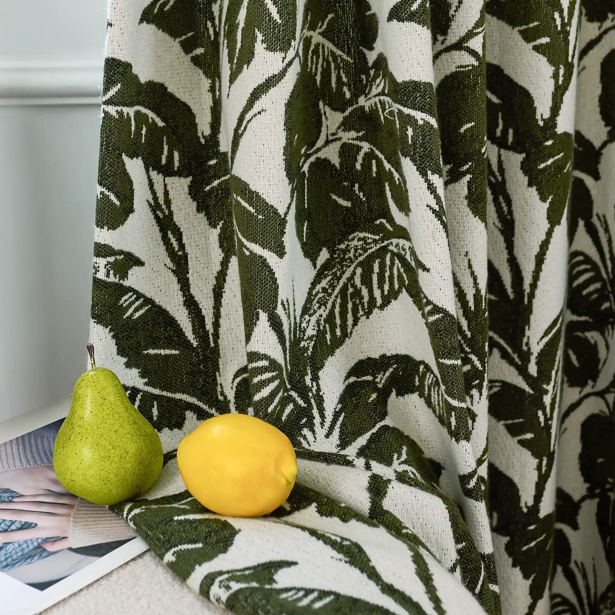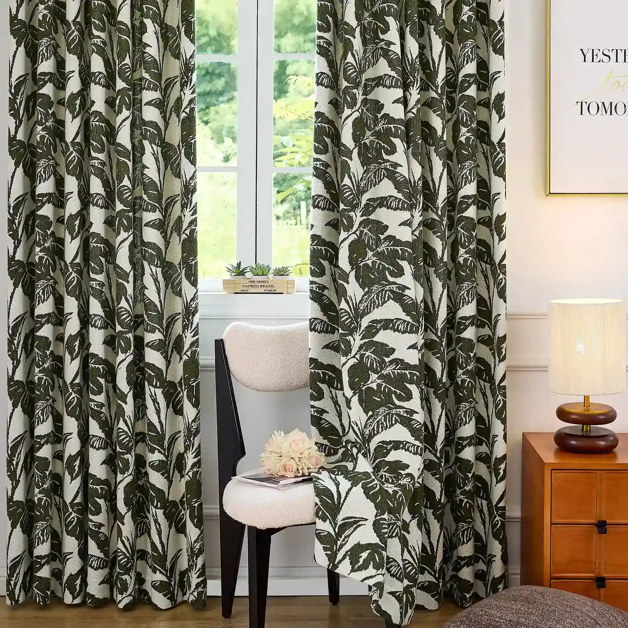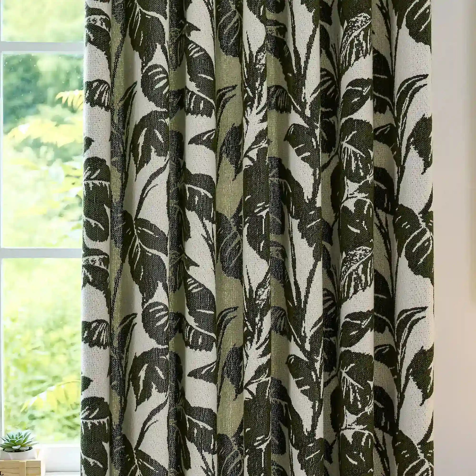 Eirlys Deep Green Tropical Leaves Jacquard Chenille Drapes