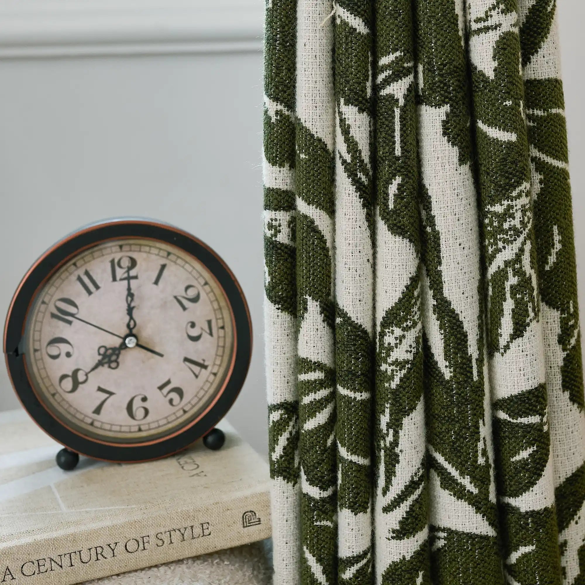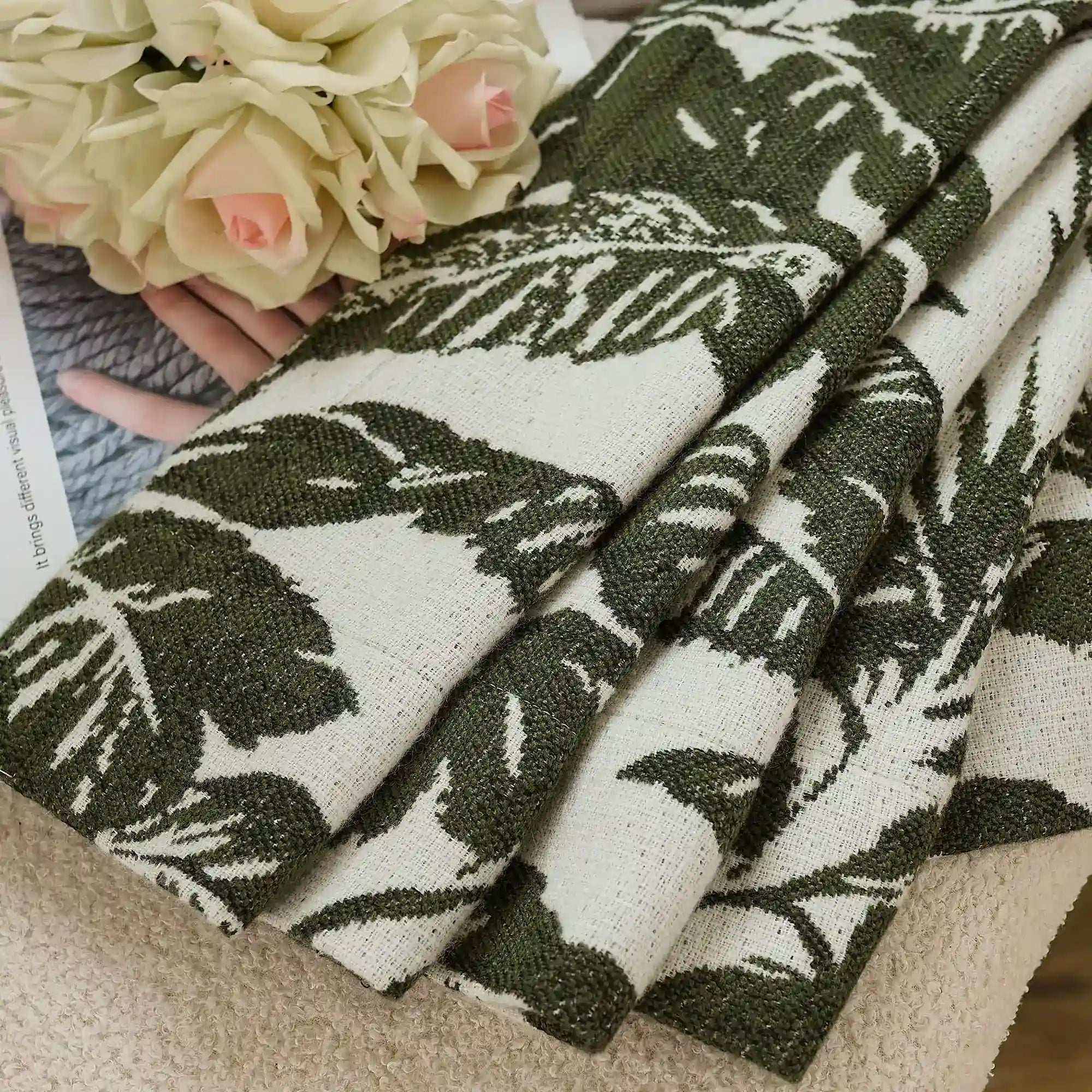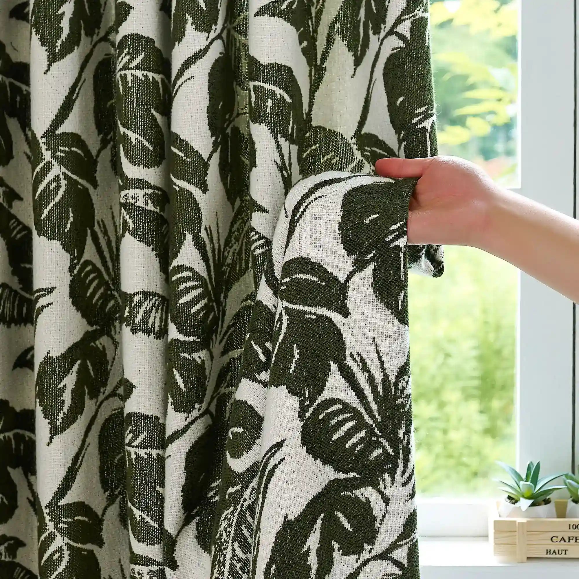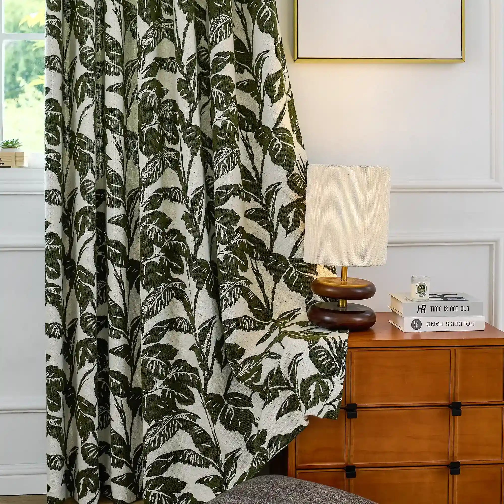 Eirlys Deep Green Tropical Leaves Jacquard Chenille Drapes