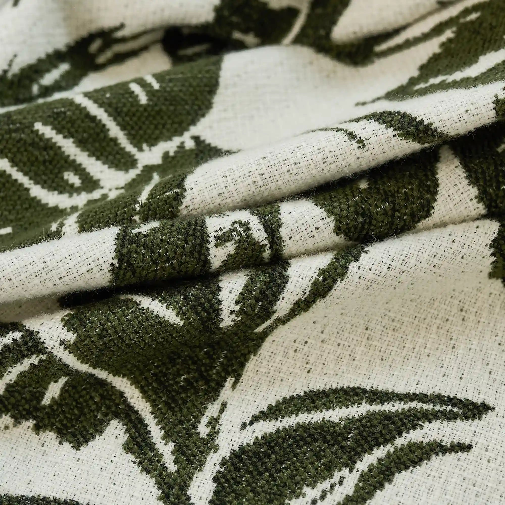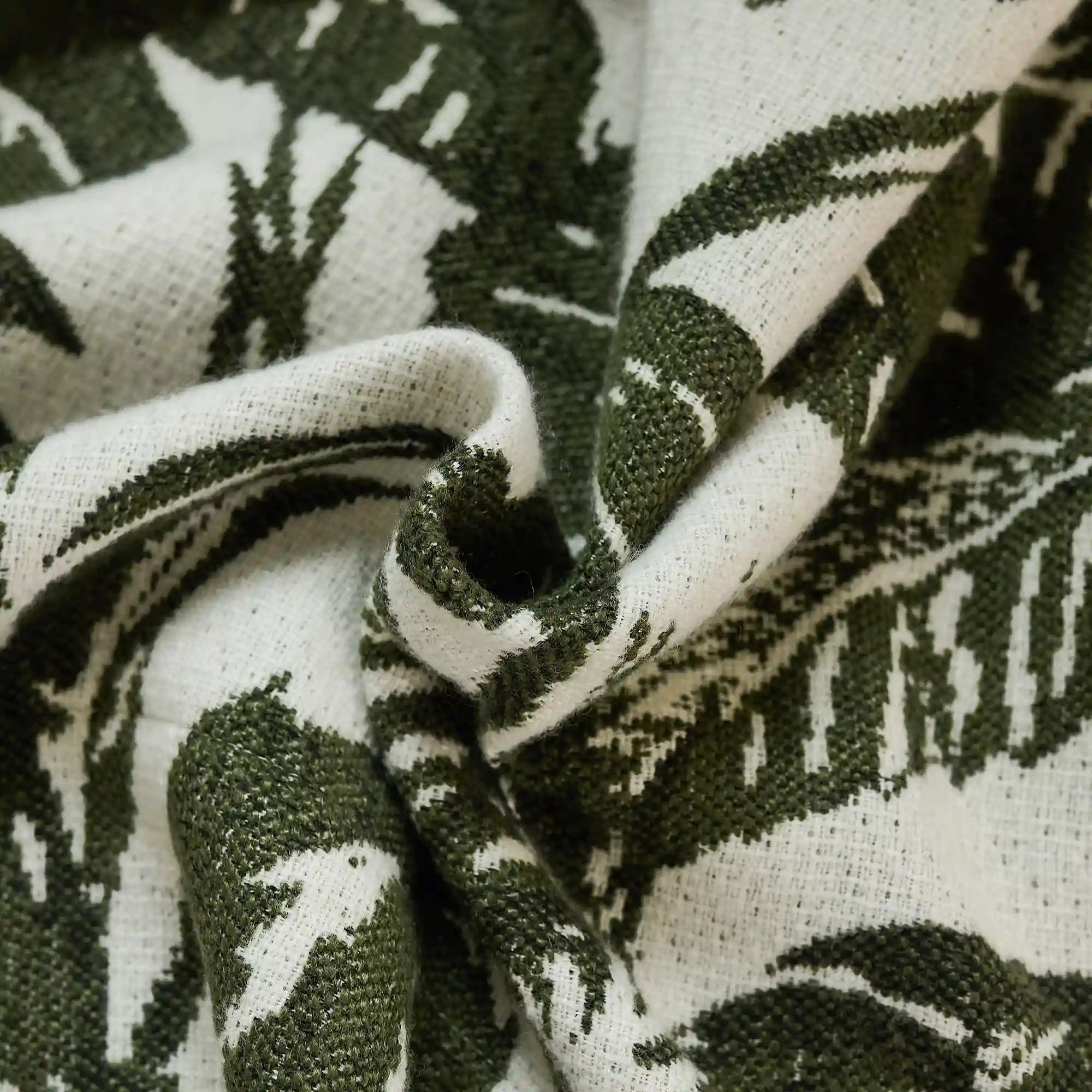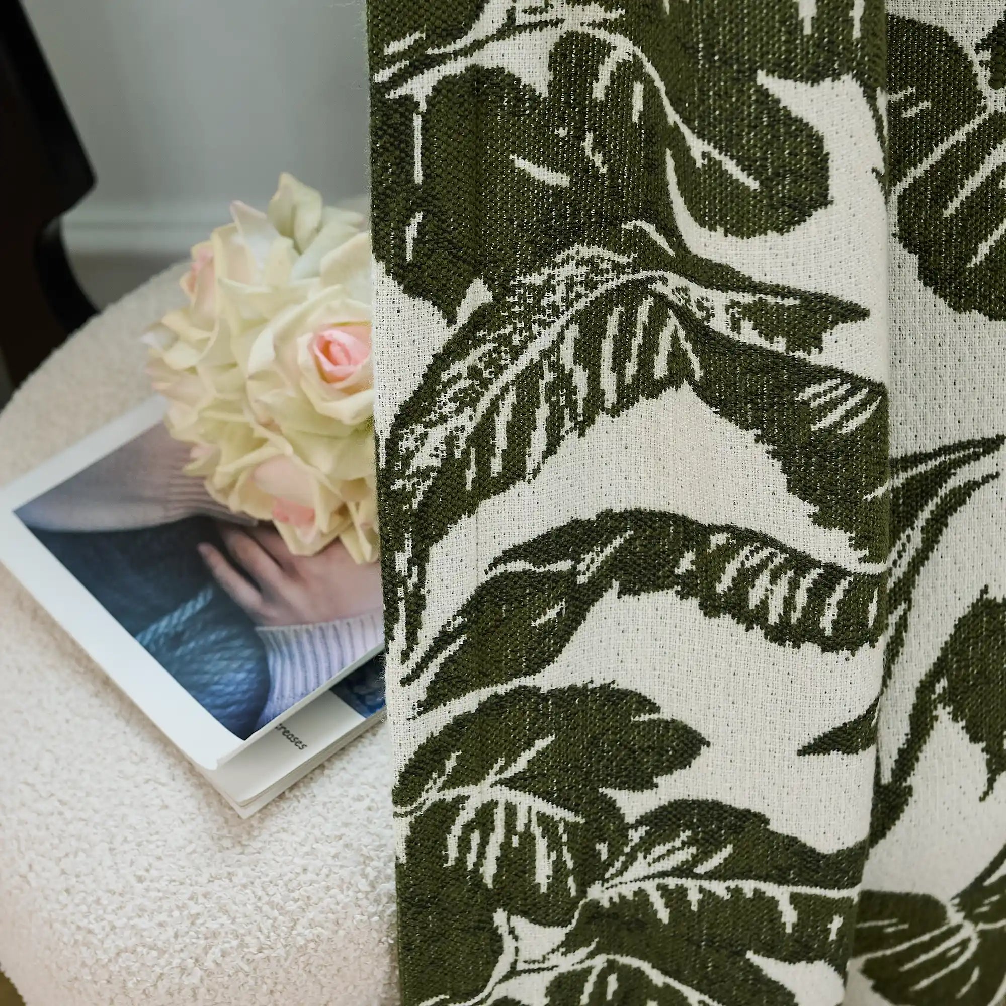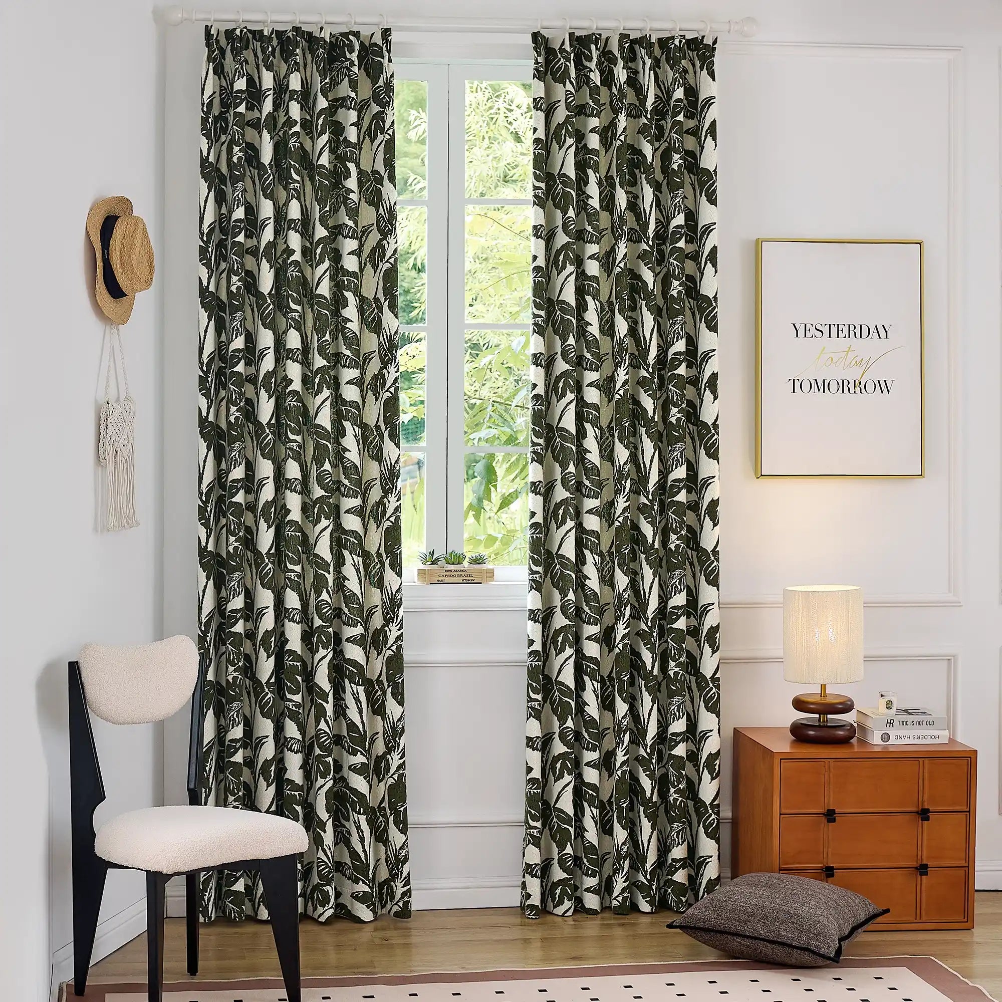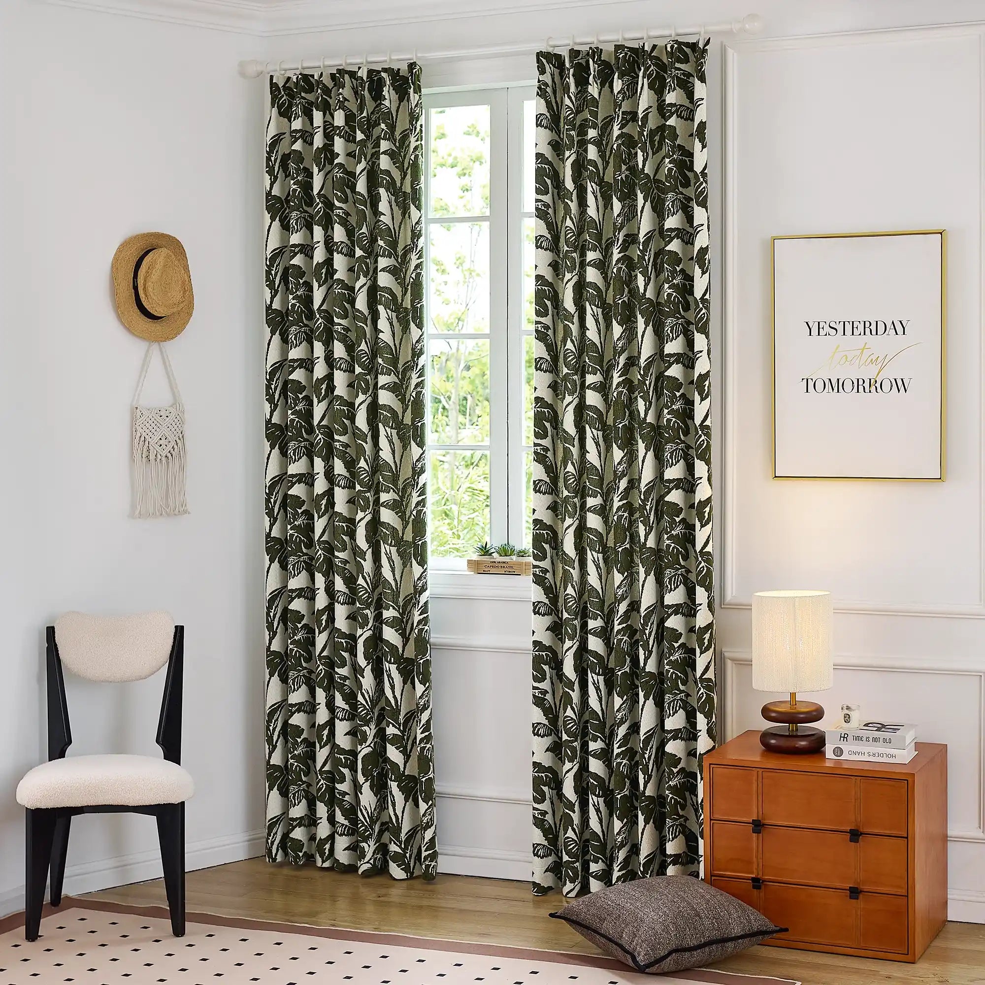 Eirlys Deep Green Tropical Leaves Jacquard Chenille Drapes