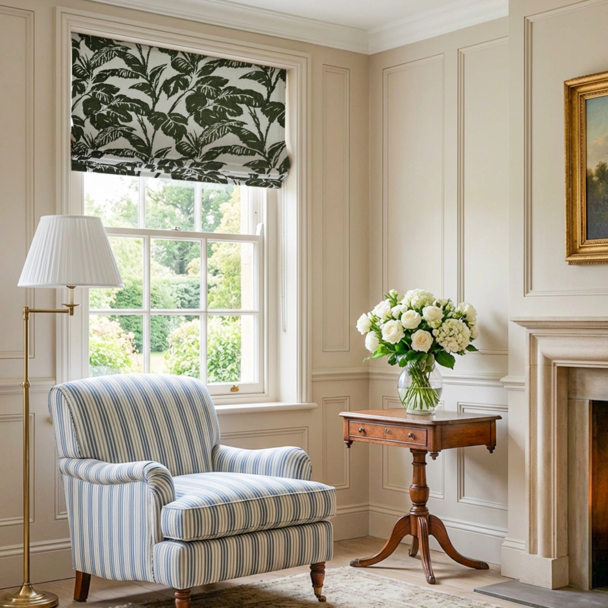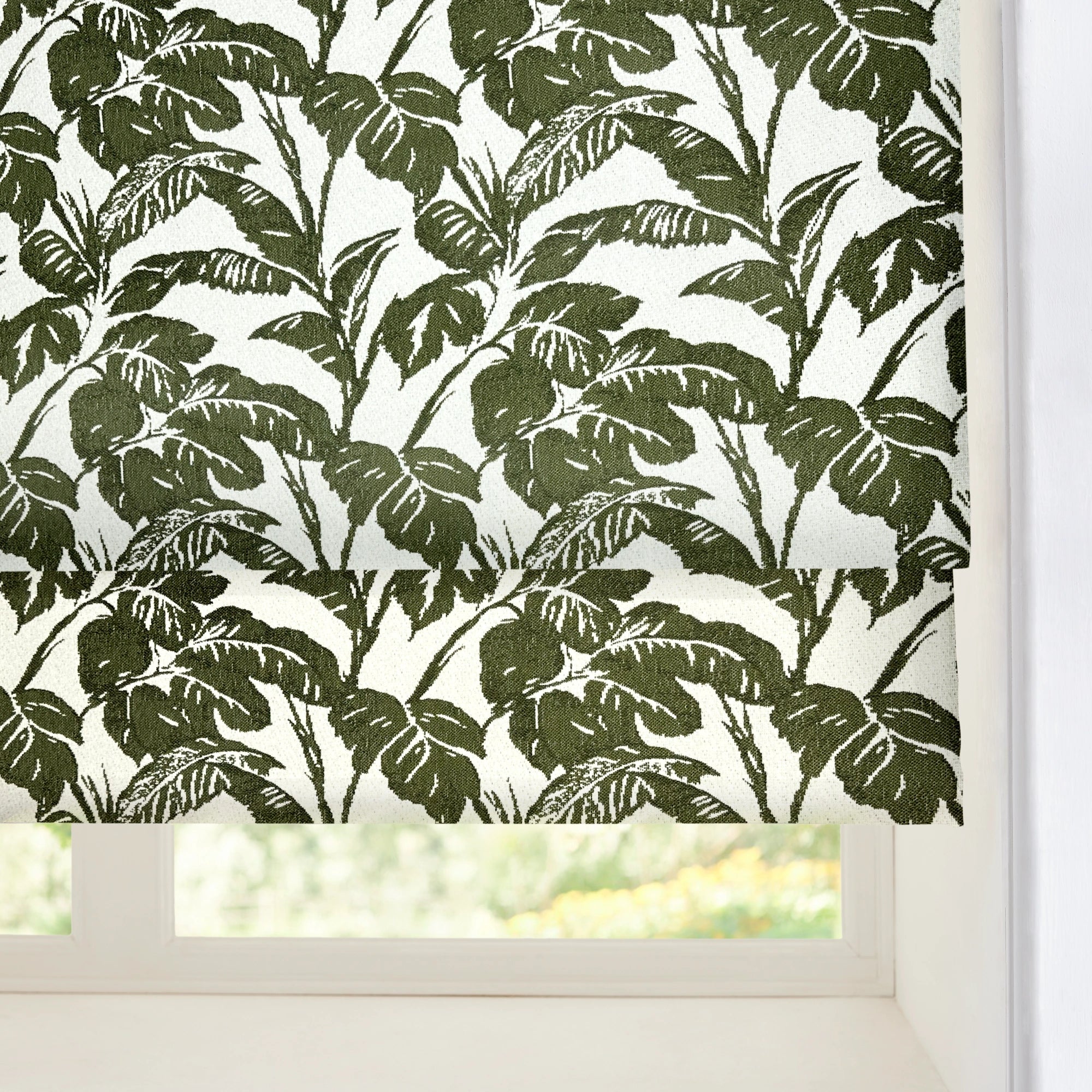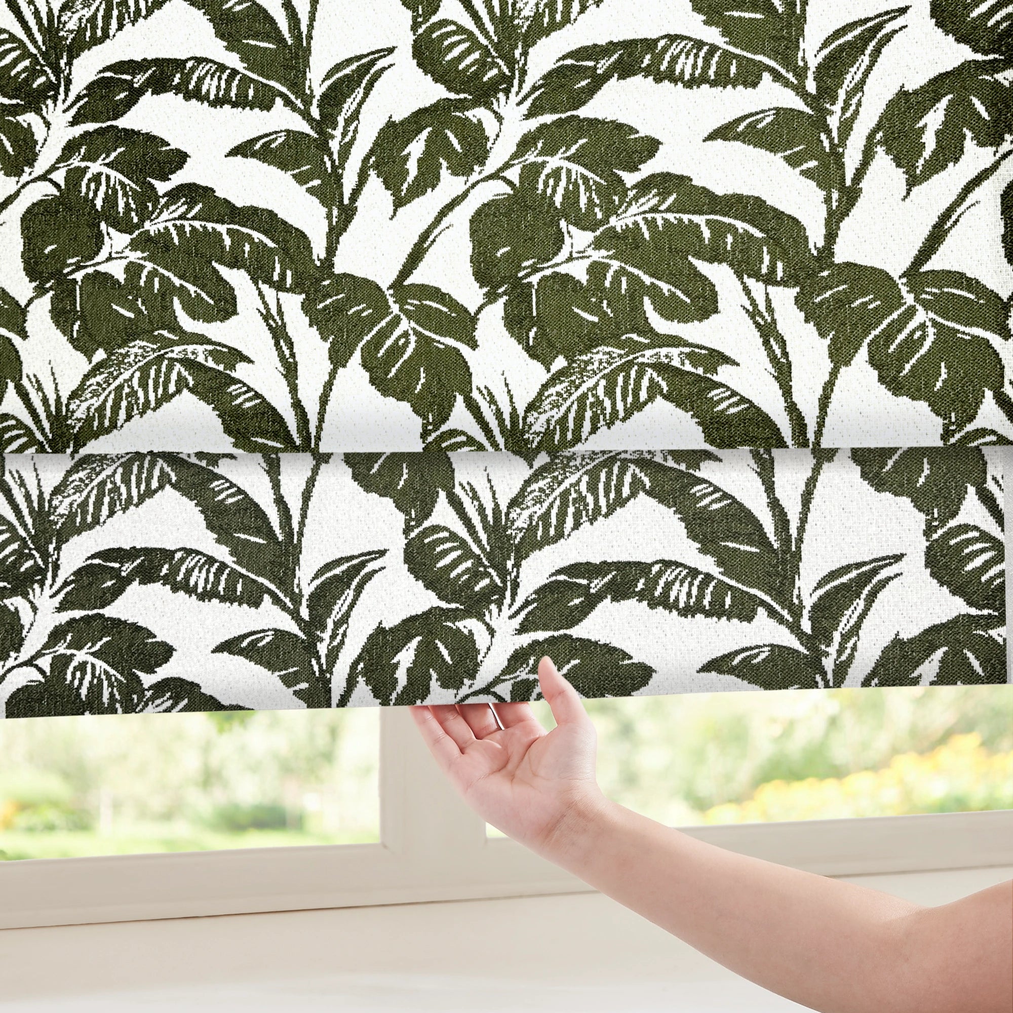 Eirlys Deep Green Tropical Leaves Jacquard Chenille Roman Shades
