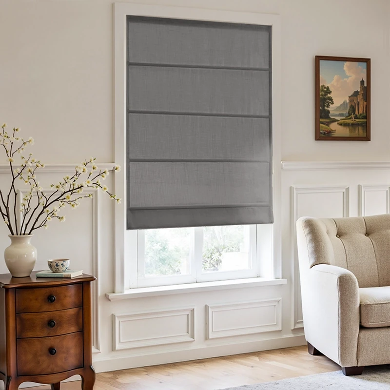 Designed to softly diffuse sunlight, these Roman shades create a bright yet calming atmosphere. Their smooth stacking and crisp lines make them ideal for spaces where you want both visual softness and a polished, tailored appearance.