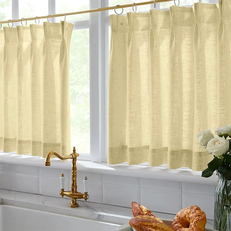 Freshine Elara Linen Cream Beige Cafe Curtains for Kitchen & Bathroom