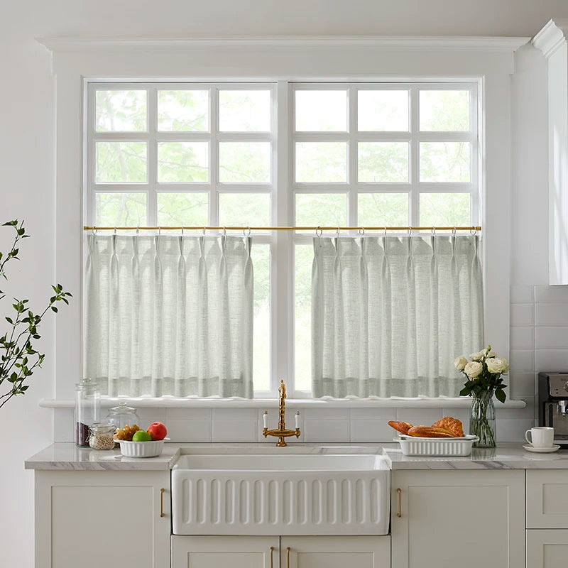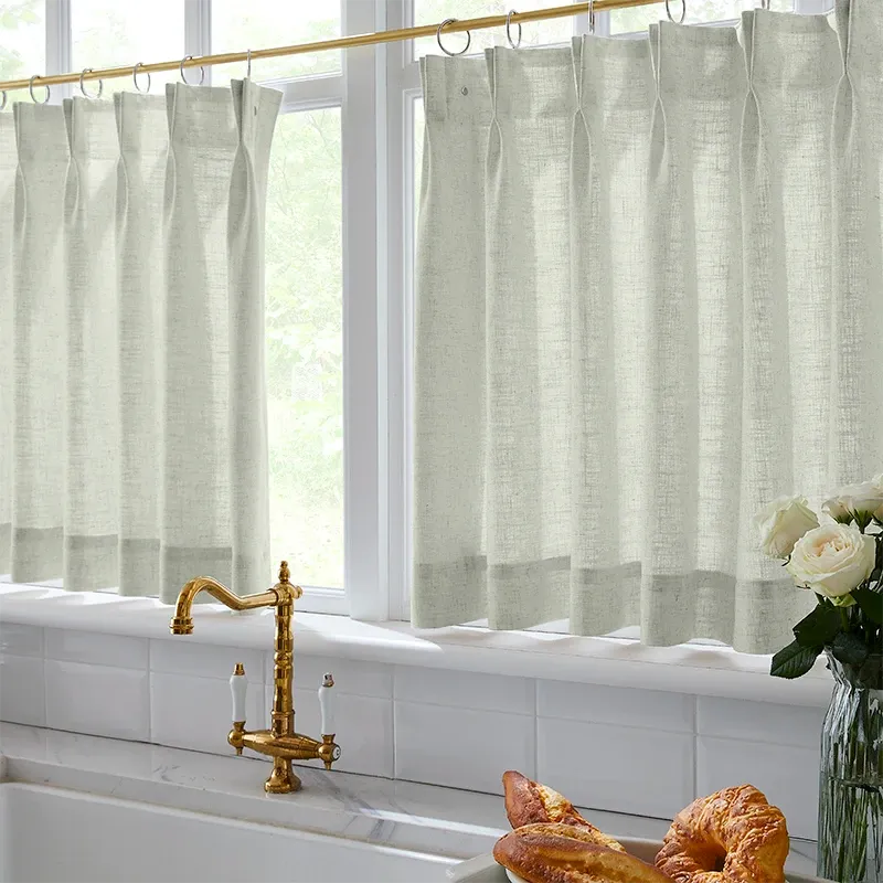 Freshine Elara Linen Medium Gray Cafe Curtains for Kitchen & Bathroom