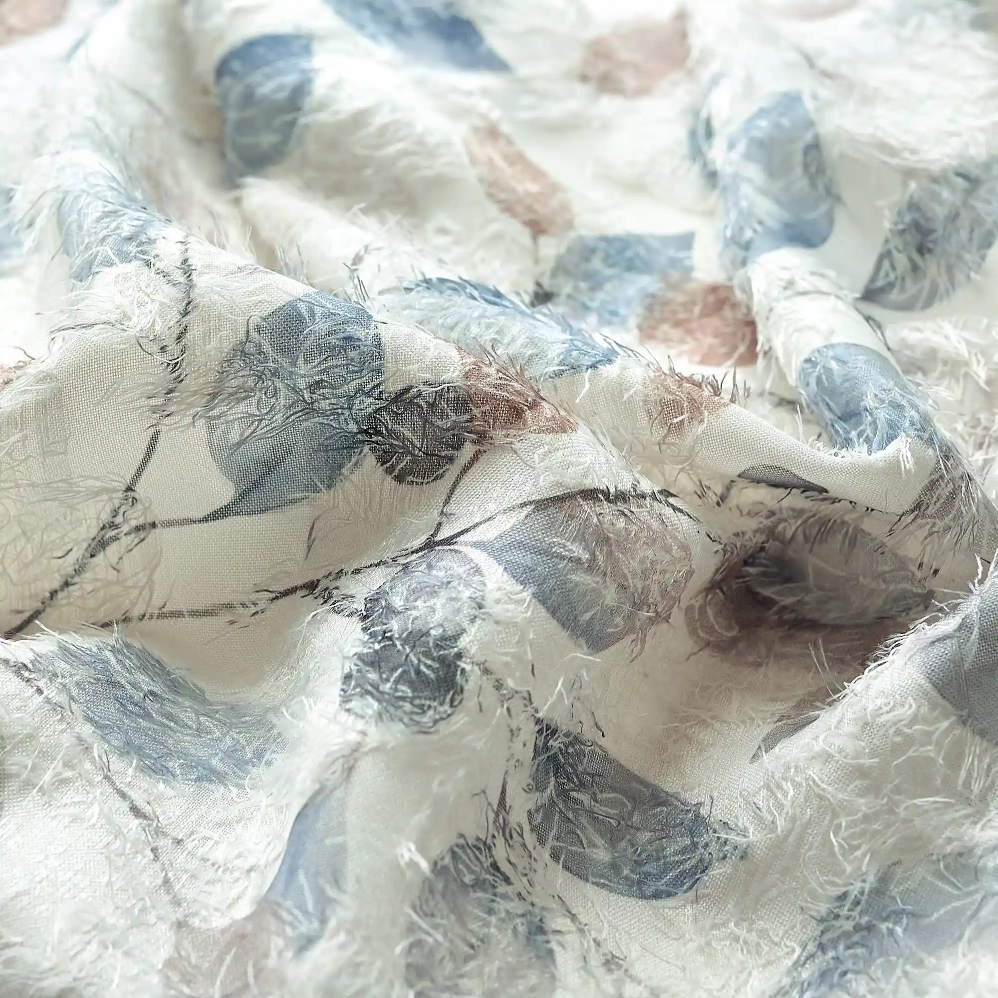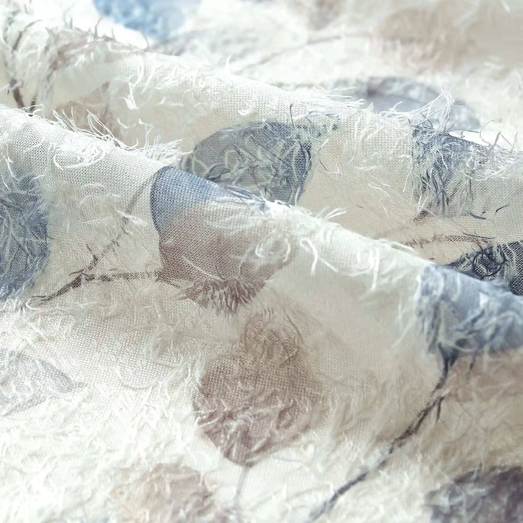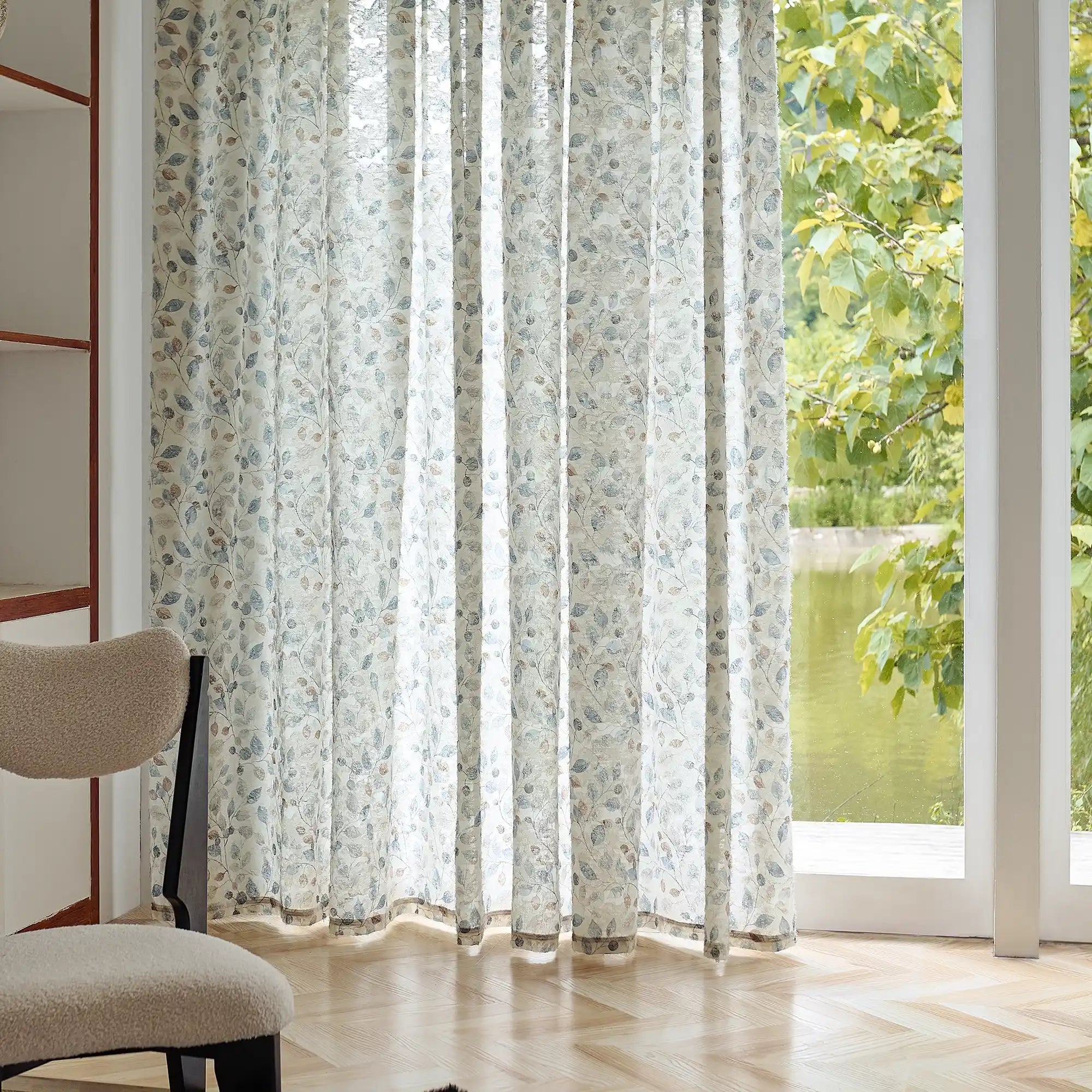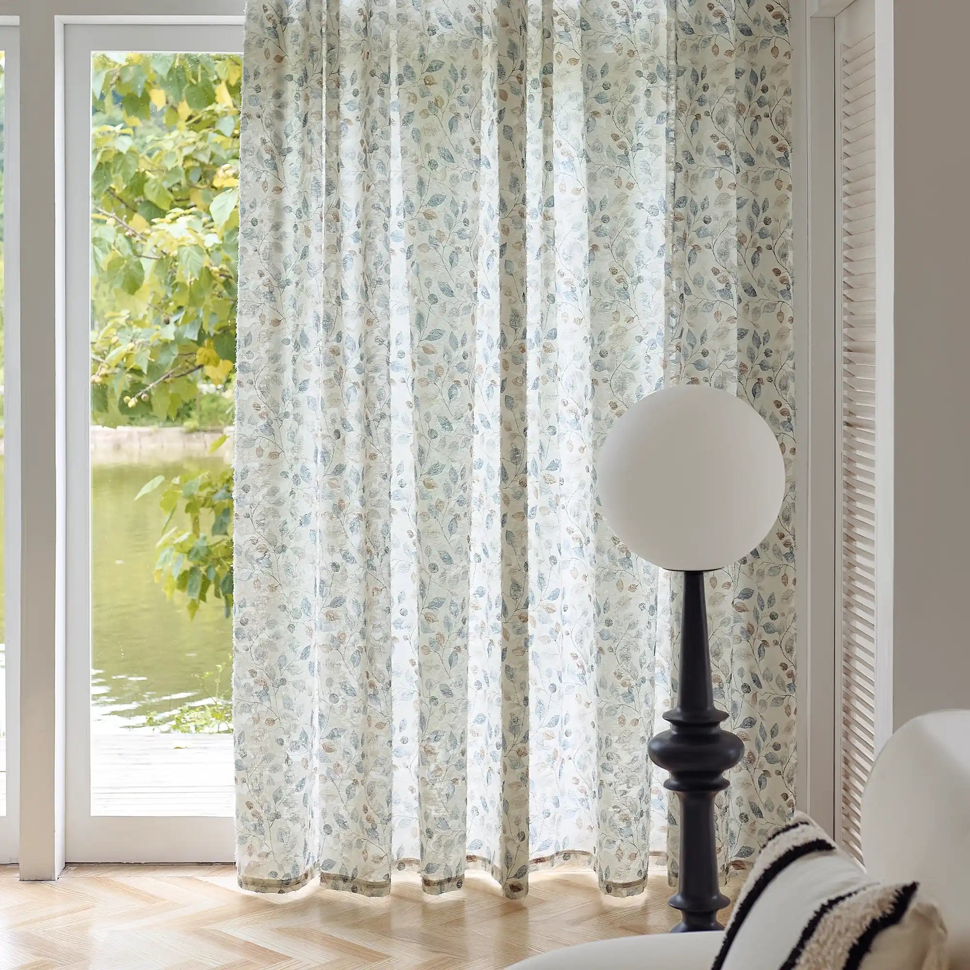 Ilyana Blue & Beige Leaf Patterned Print Sheer Curtains