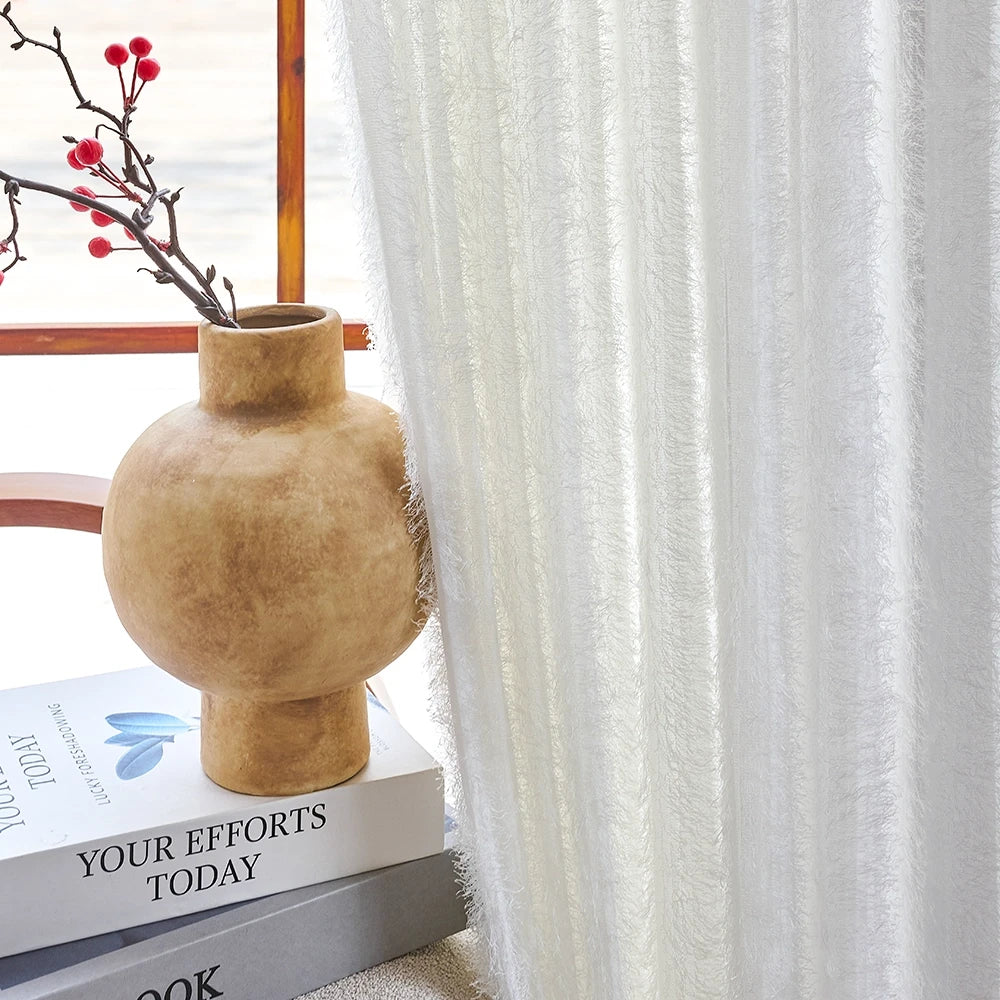 Meliora Pure White Feather Fleece Sheer Curtains for Modern Minimalist Interiors