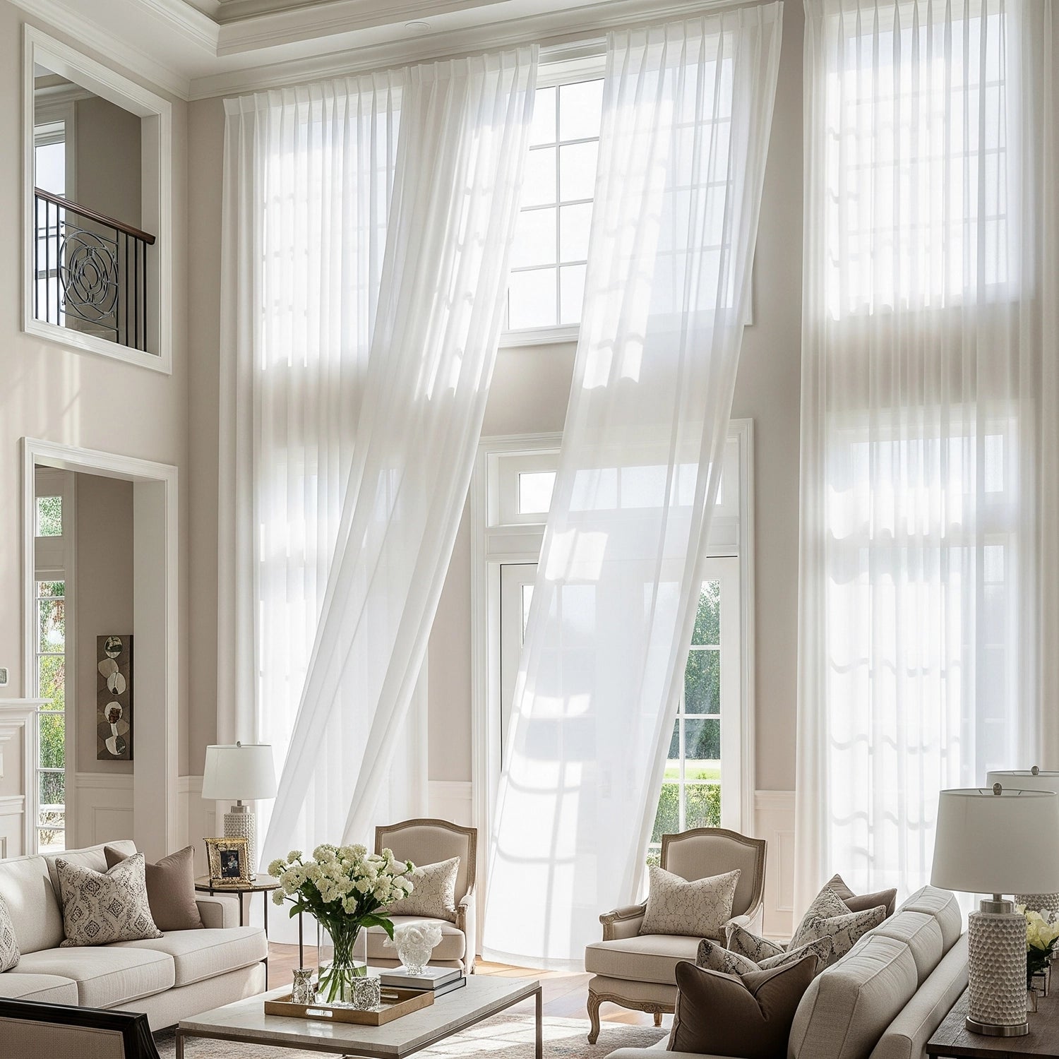 Mira Solid Sheer Curtains for Large Windows - Light Filtering Drapes for Living Room and Bedroom