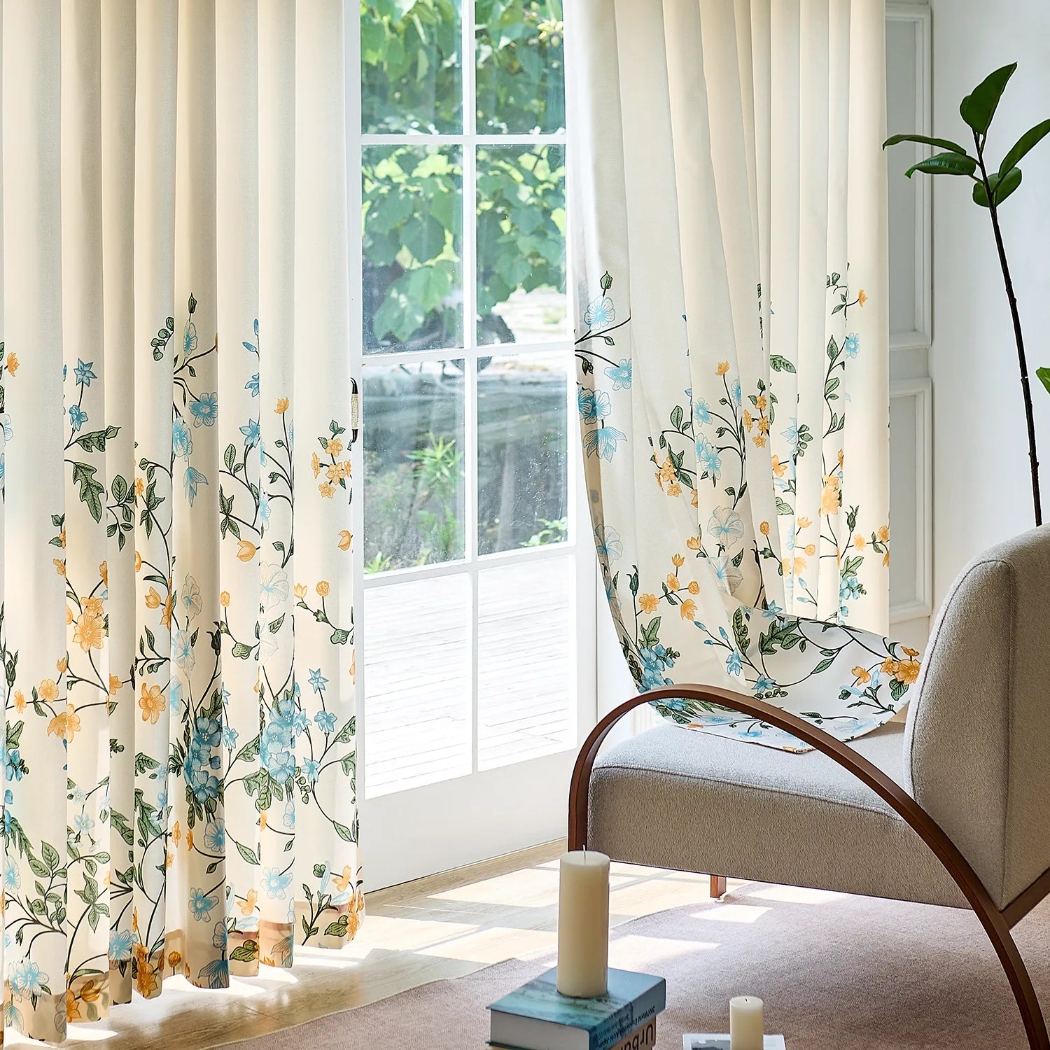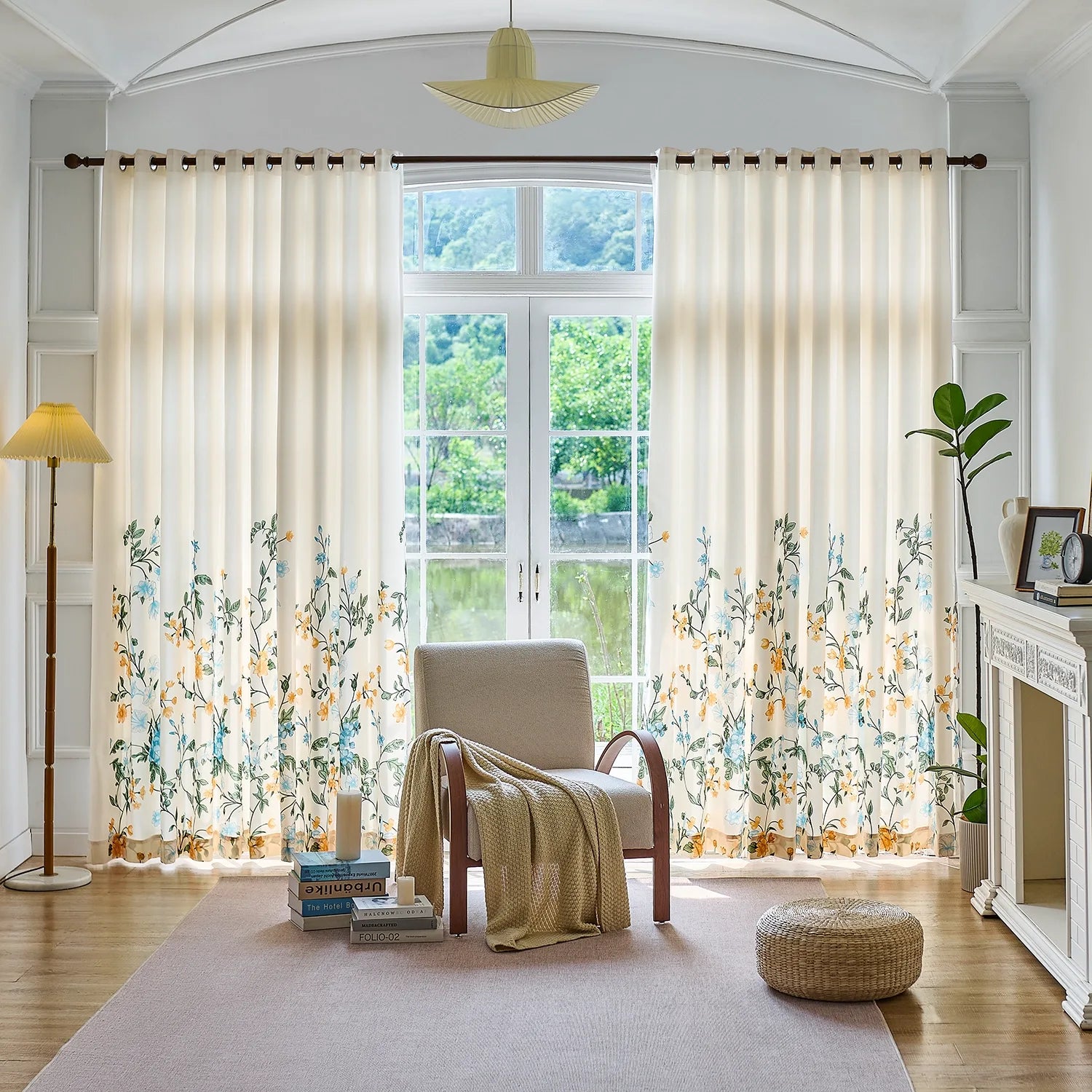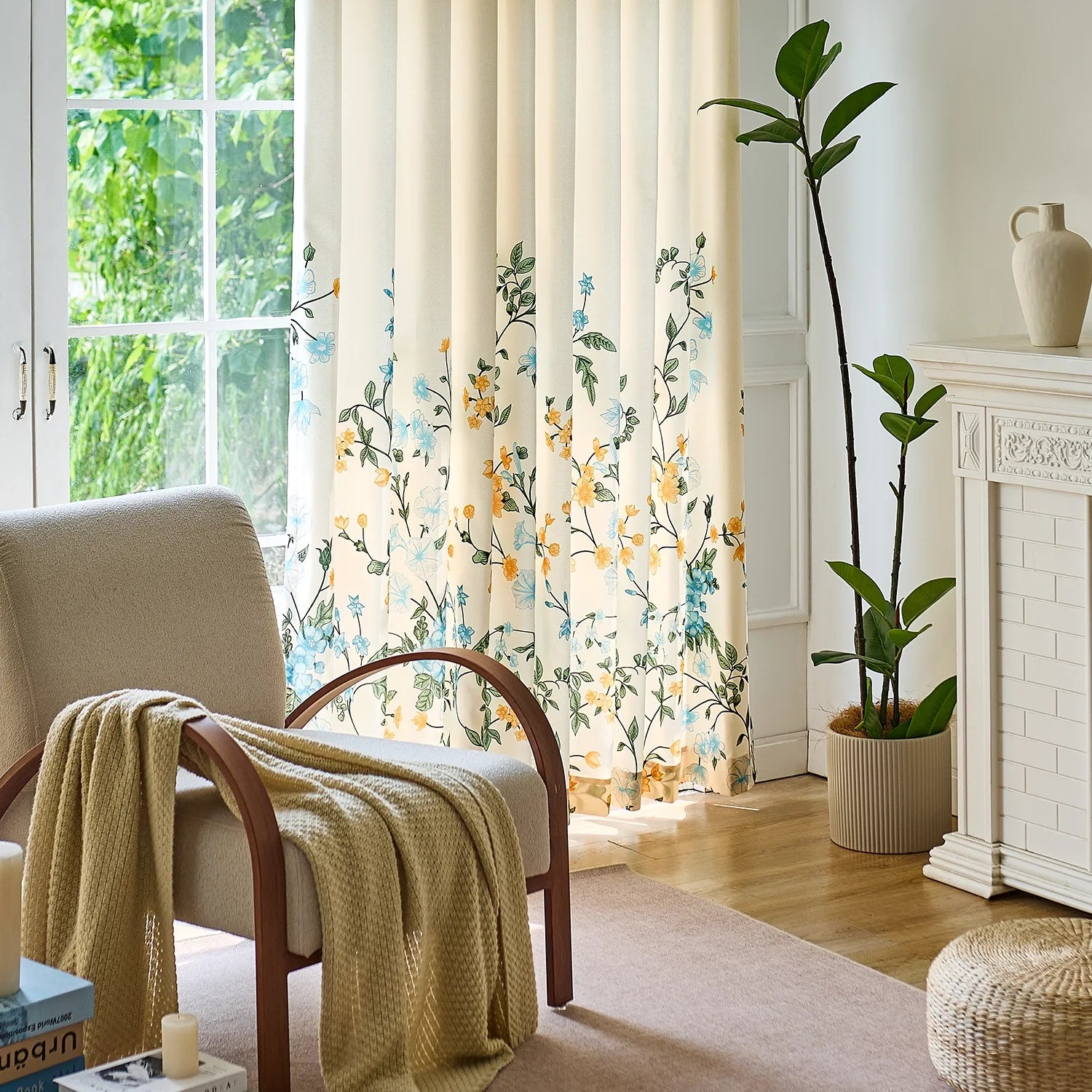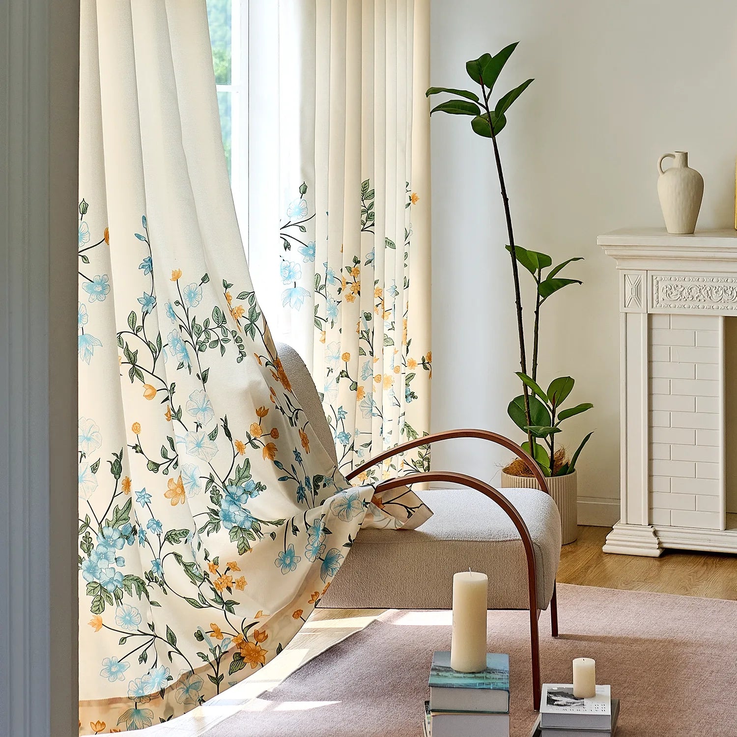 Zaelis Ivory Garden Bloom Floral Print Linen Textured Curtains