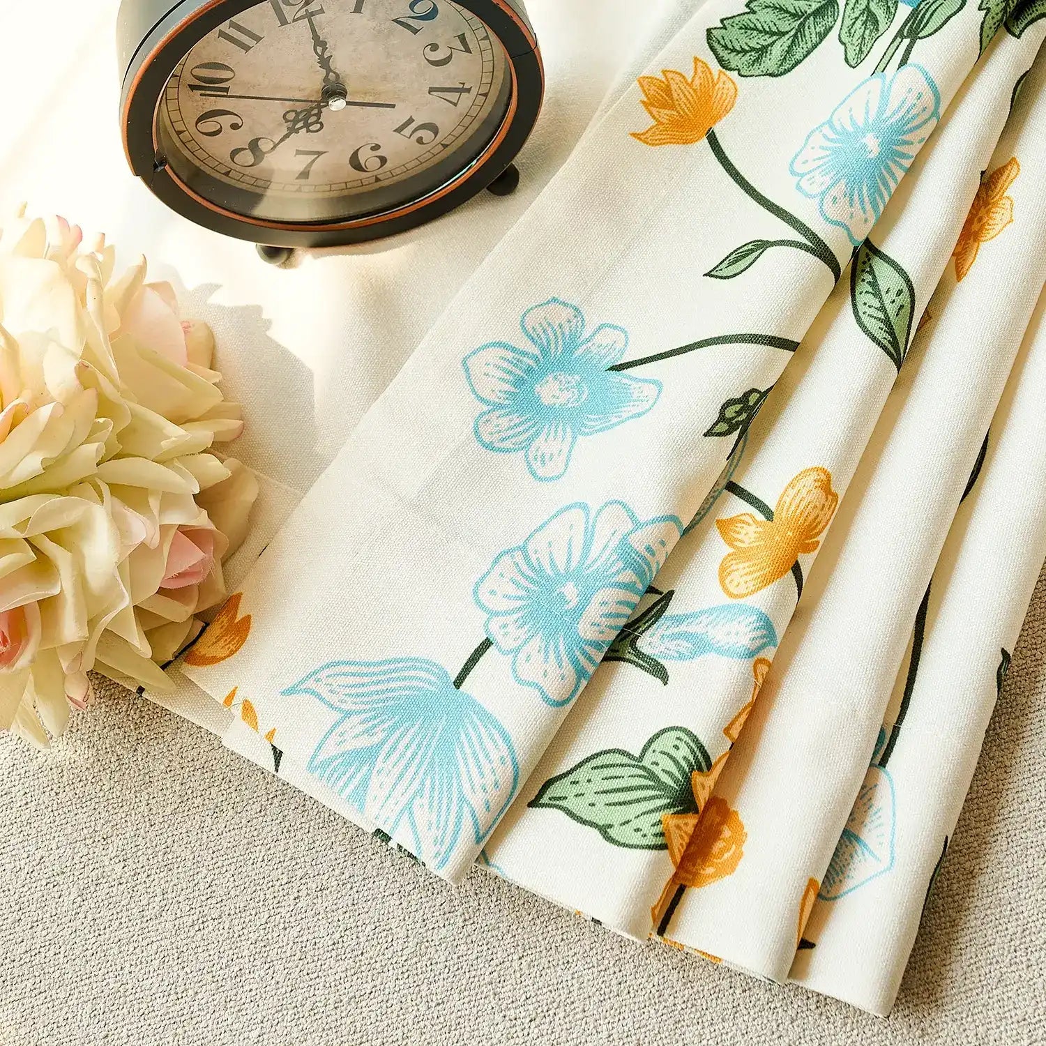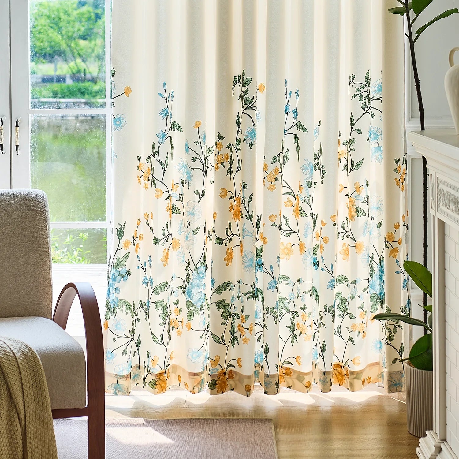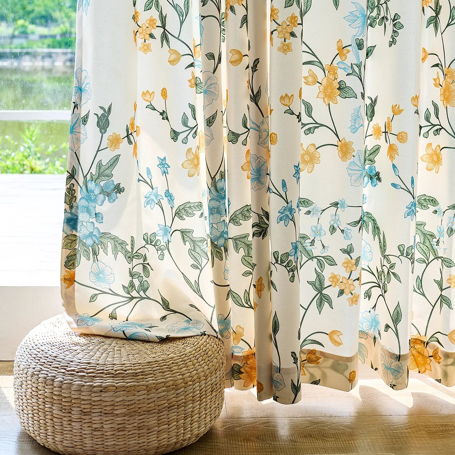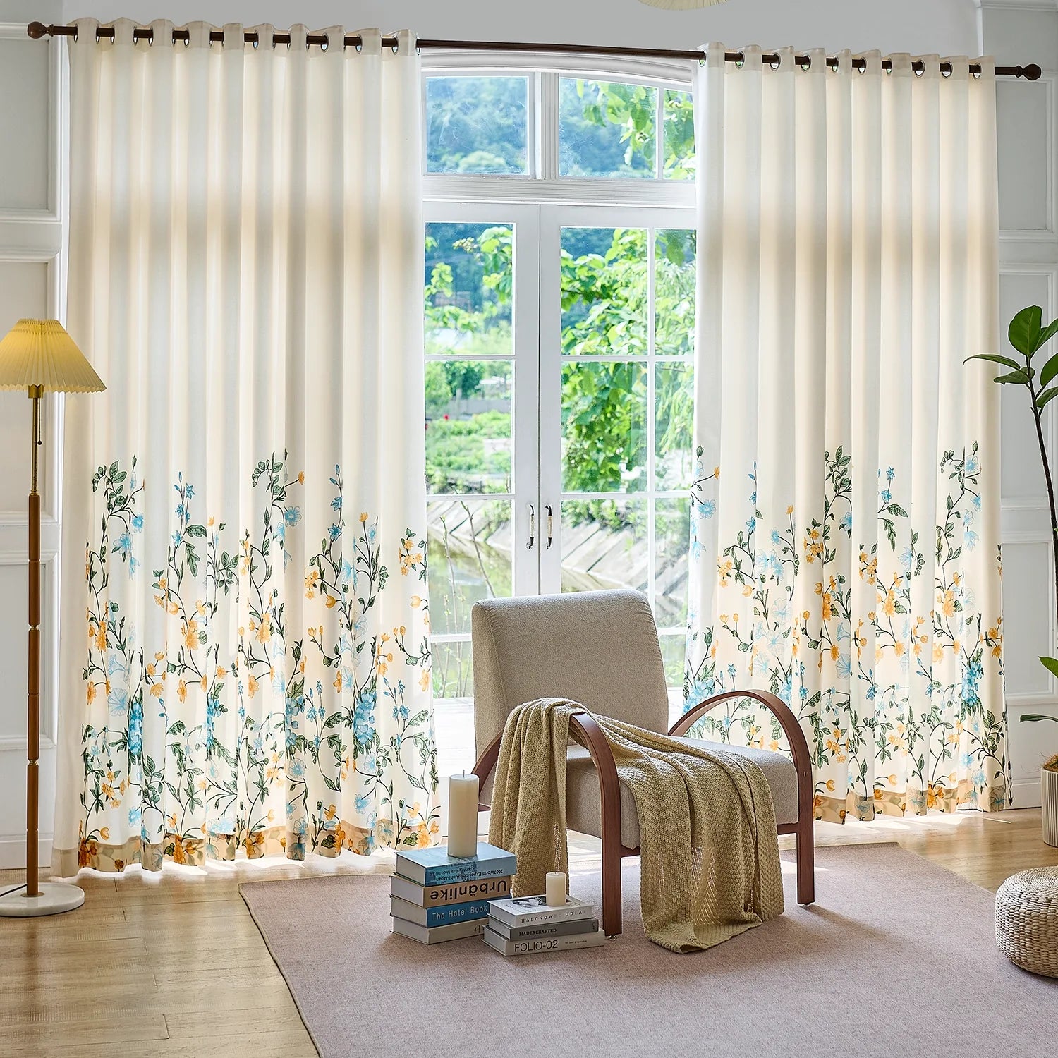 Zaelis Ivory Garden Bloom Floral Print Linen Textured Curtains