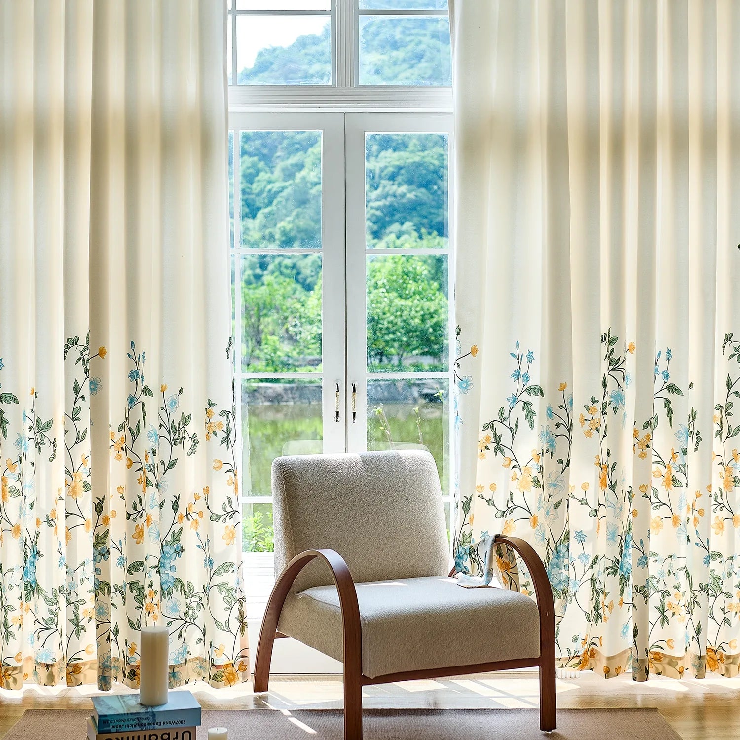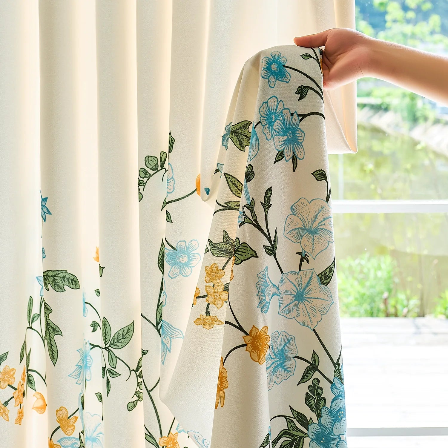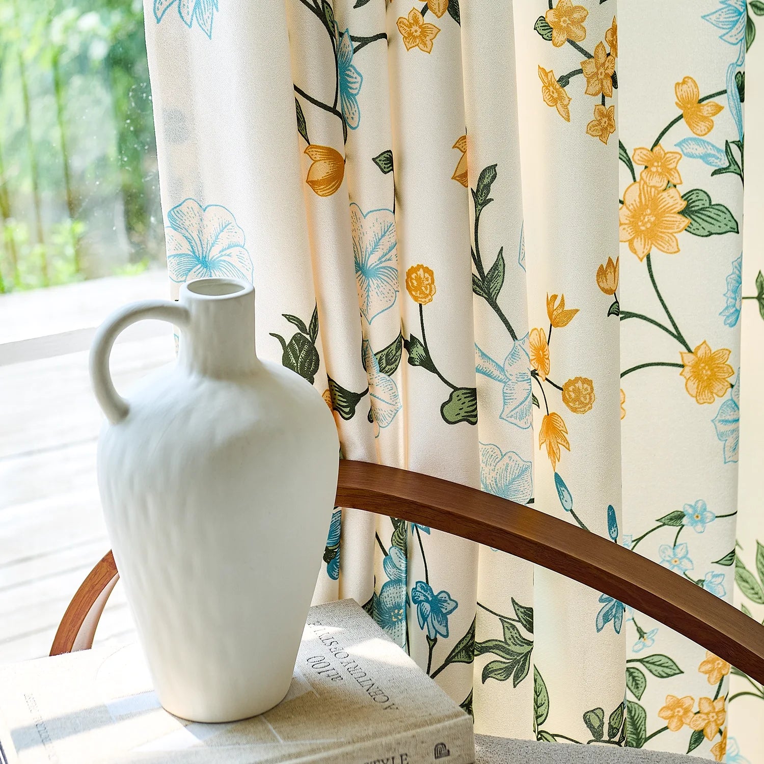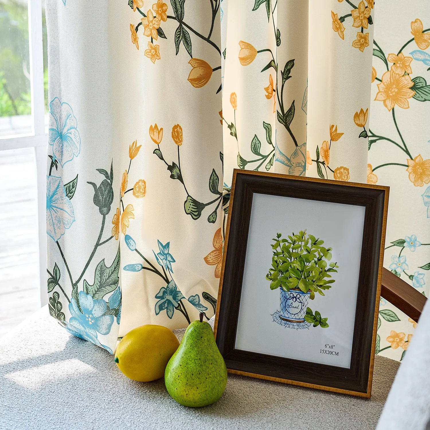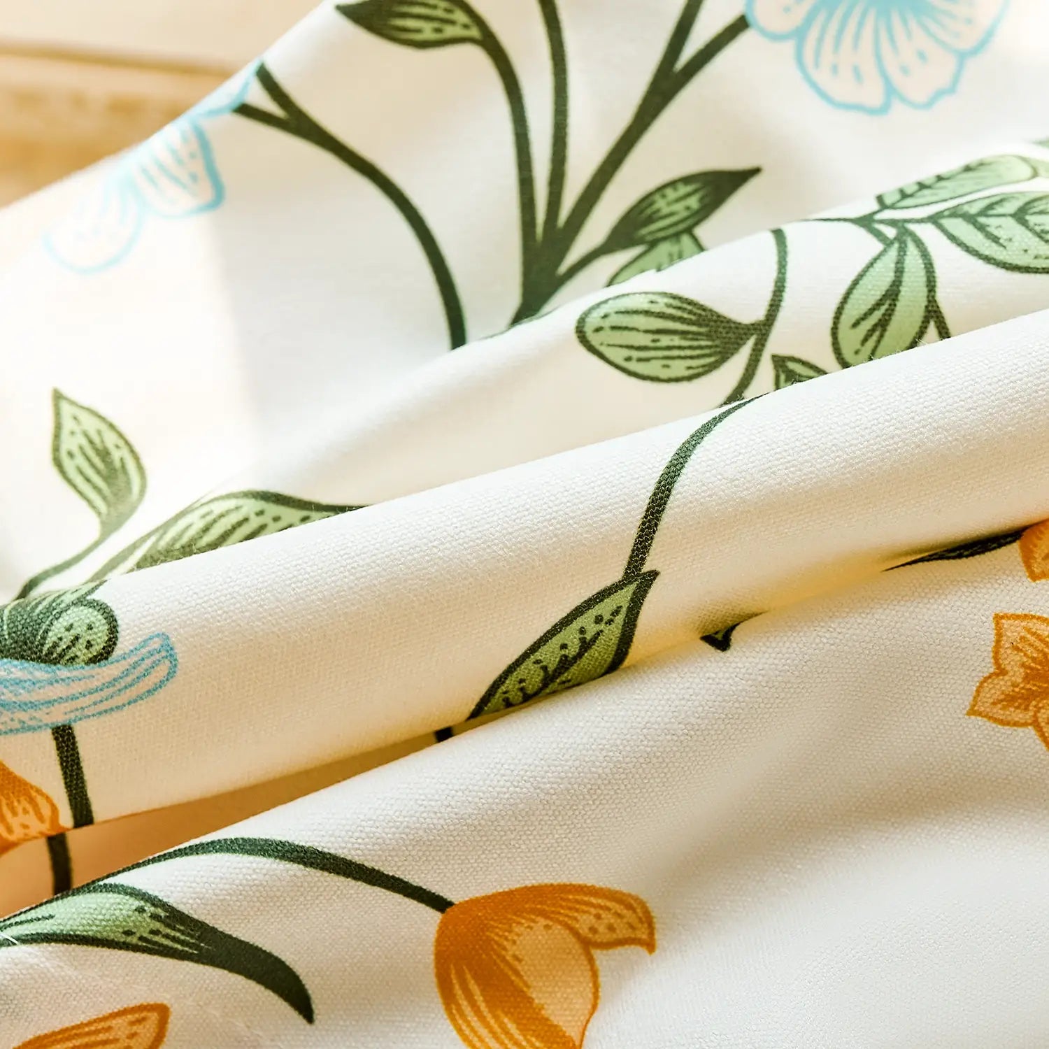 Zaelis Ivory Garden Bloom Floral Print Linen Textured Curtains