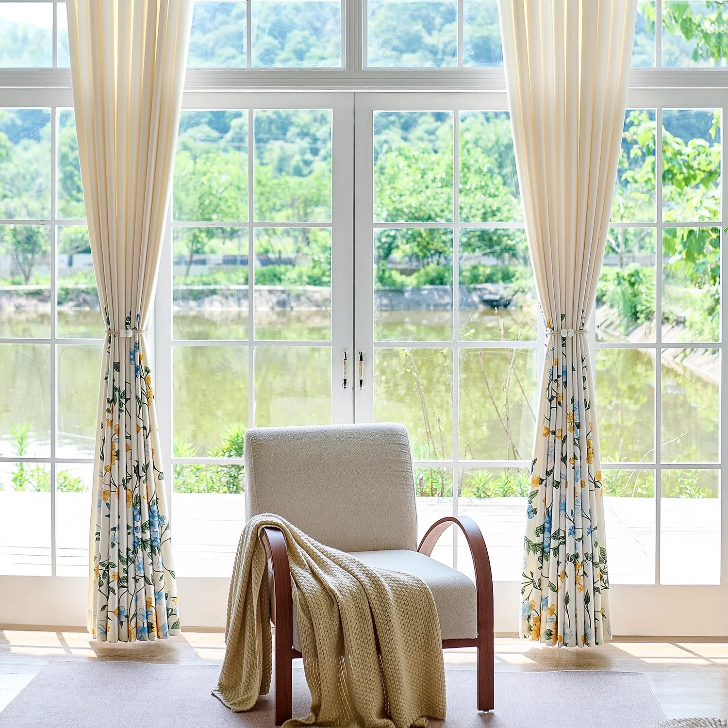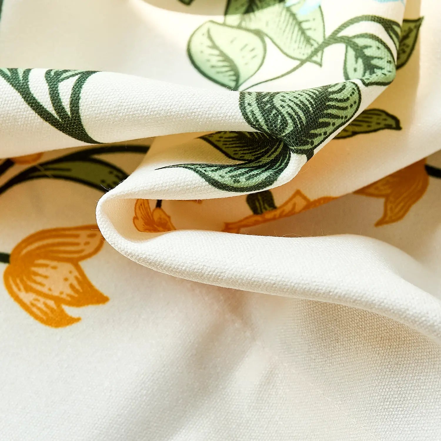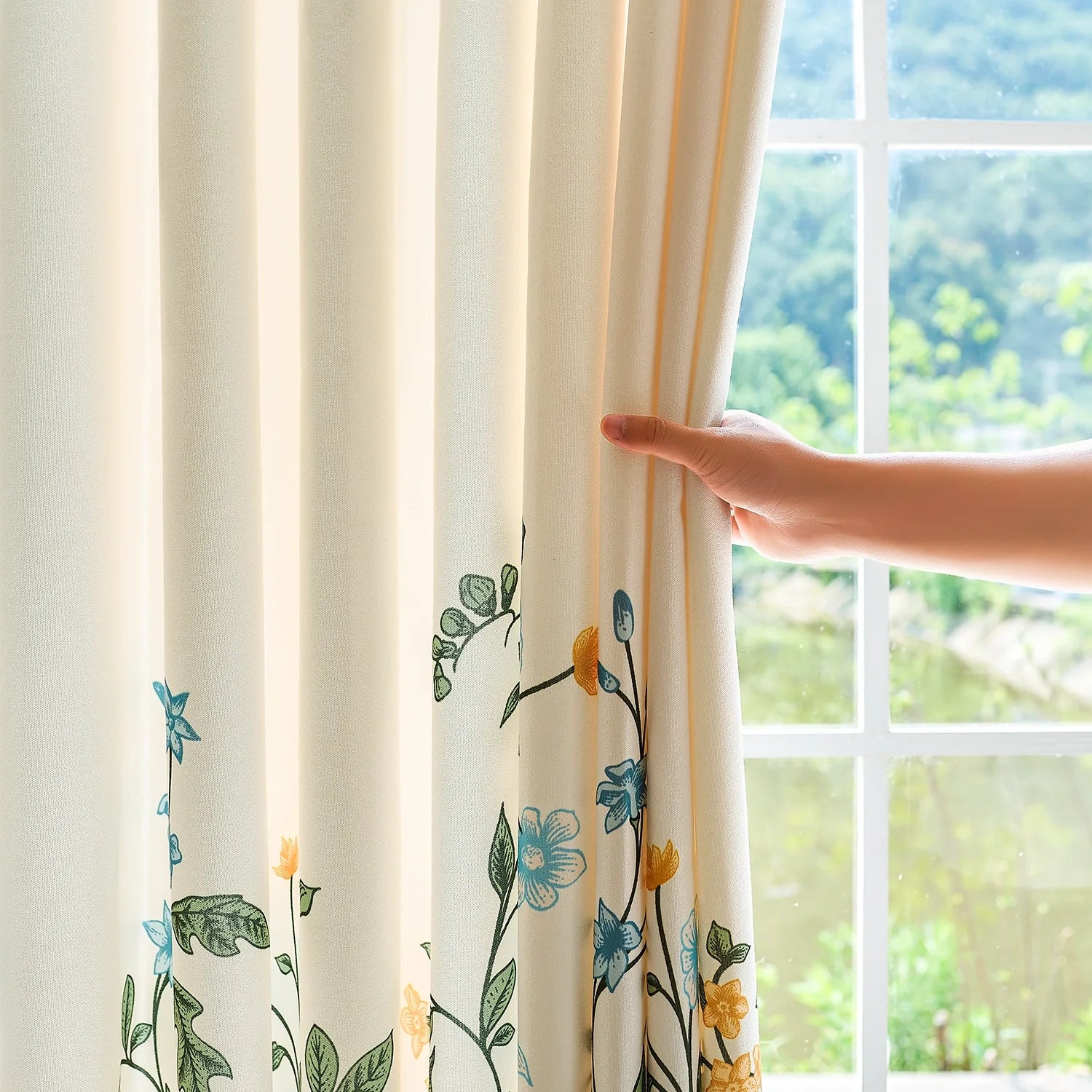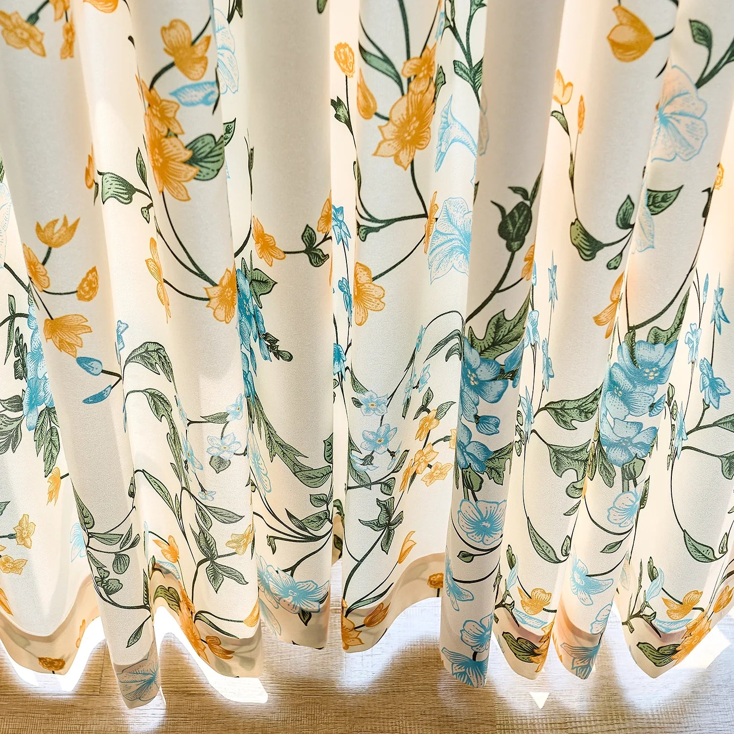 Zaelis Ivory Garden Bloom Floral Print Linen Textured Curtains